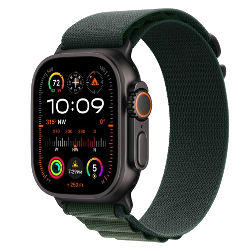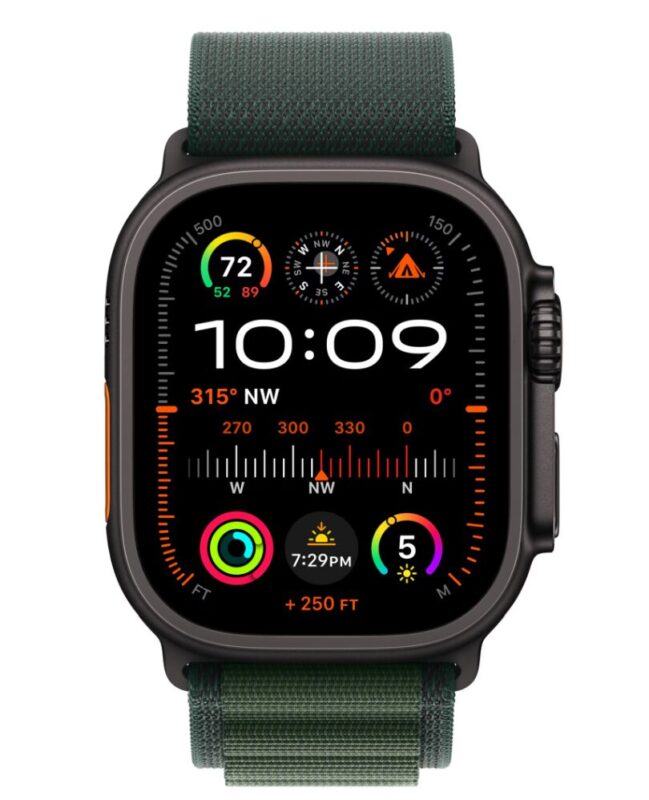 Apple Watch Ultra 2, GPS, Cellular, Carcasa Black Titanium 49mm, Dark Green Alpine Loop – Small